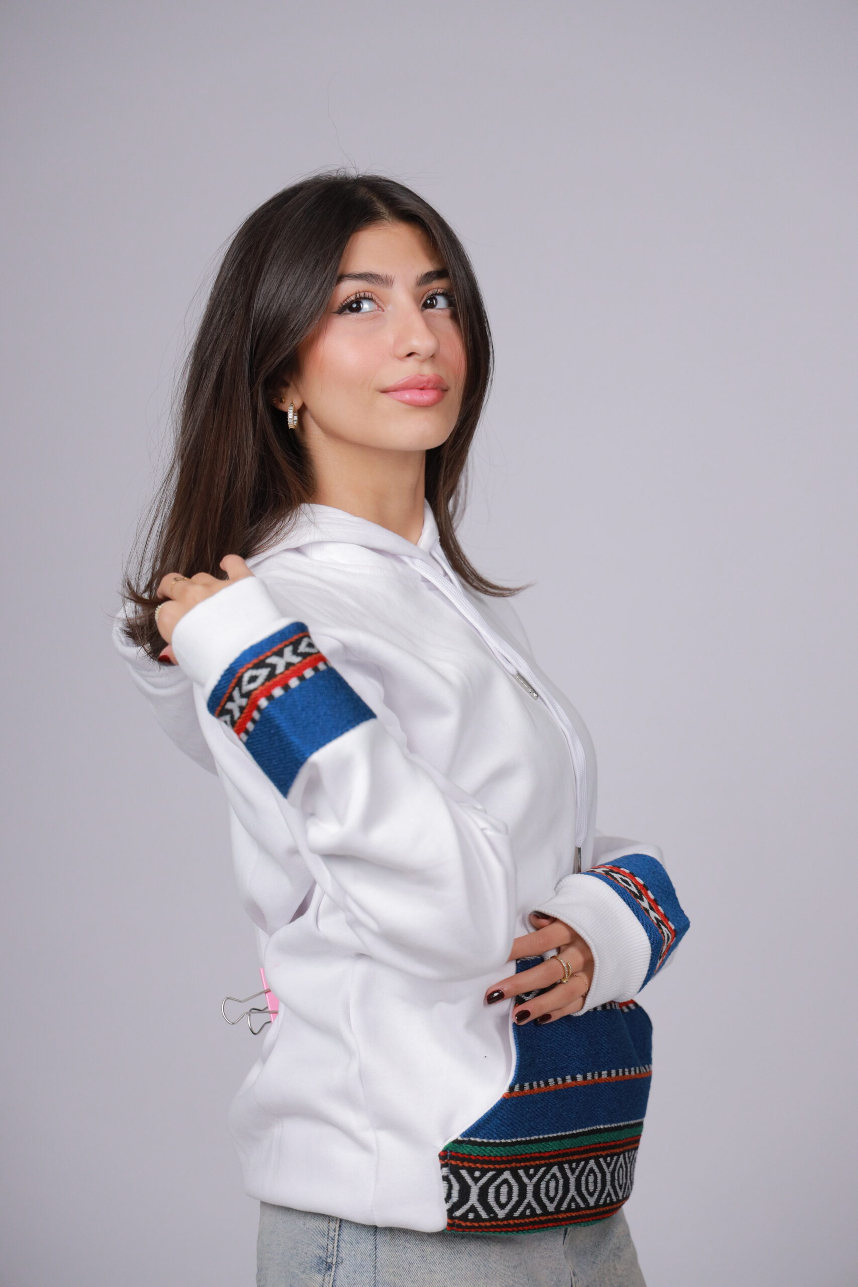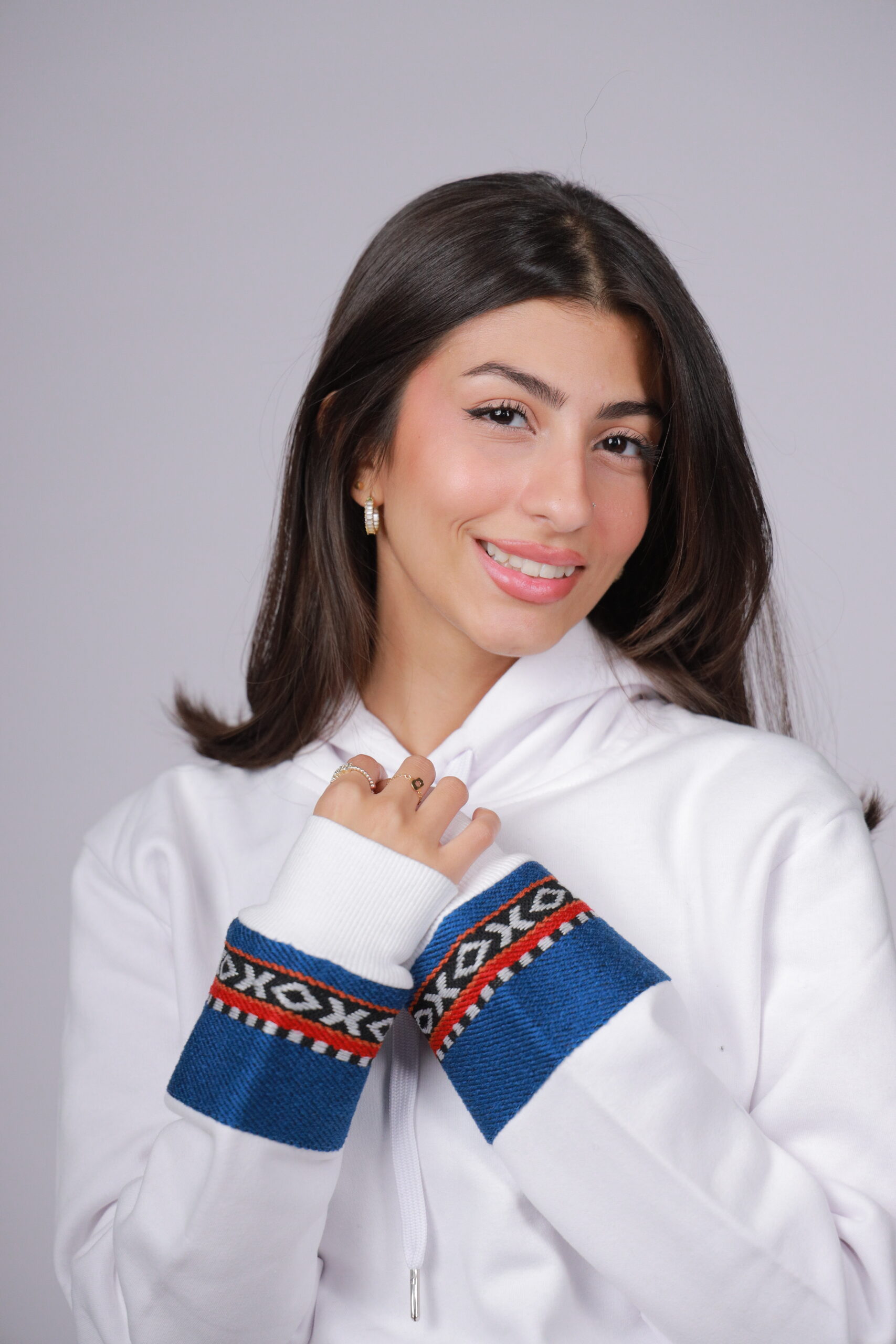 White Unisex Hoodie with Blue Sadu 100% Pure Egyptian Cotton